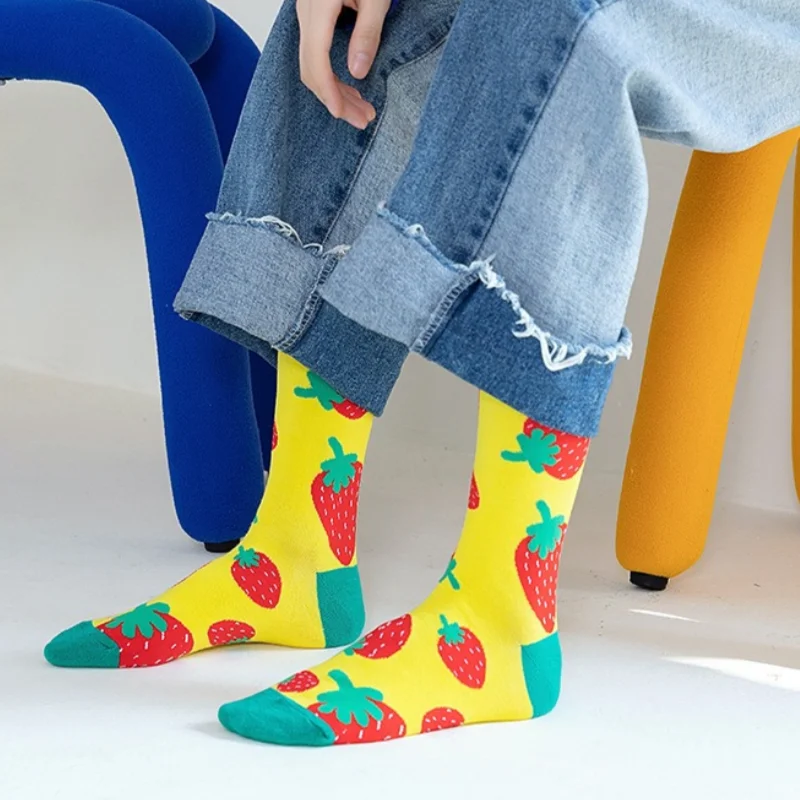 Chaussettes mode fruit pour homme — idéal en duo/couple, style hip-hop, mi-mollet, unisexe pour femme ou homme, imprimés cartoon, coton respirant, style décontracté