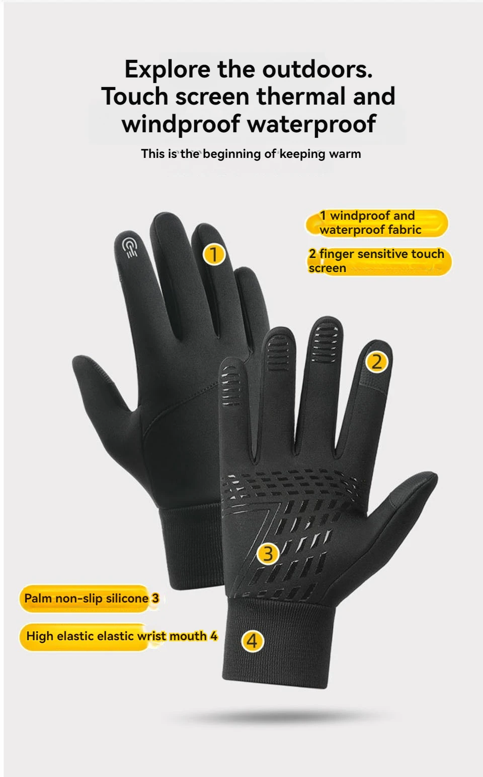 Warm and Breathable - The thermal gloves are combined with multilayer softshell fabric, also matched with skin-friendly lining enhancing the warmth and elasticity, to keep your hands warm and breathable. Elastic cuffs give a nice snug fit and offer effective enough to resistant the cold wind. Water resistant tech shell protect you from snow and light rain, keep your hand warm and dry outside.