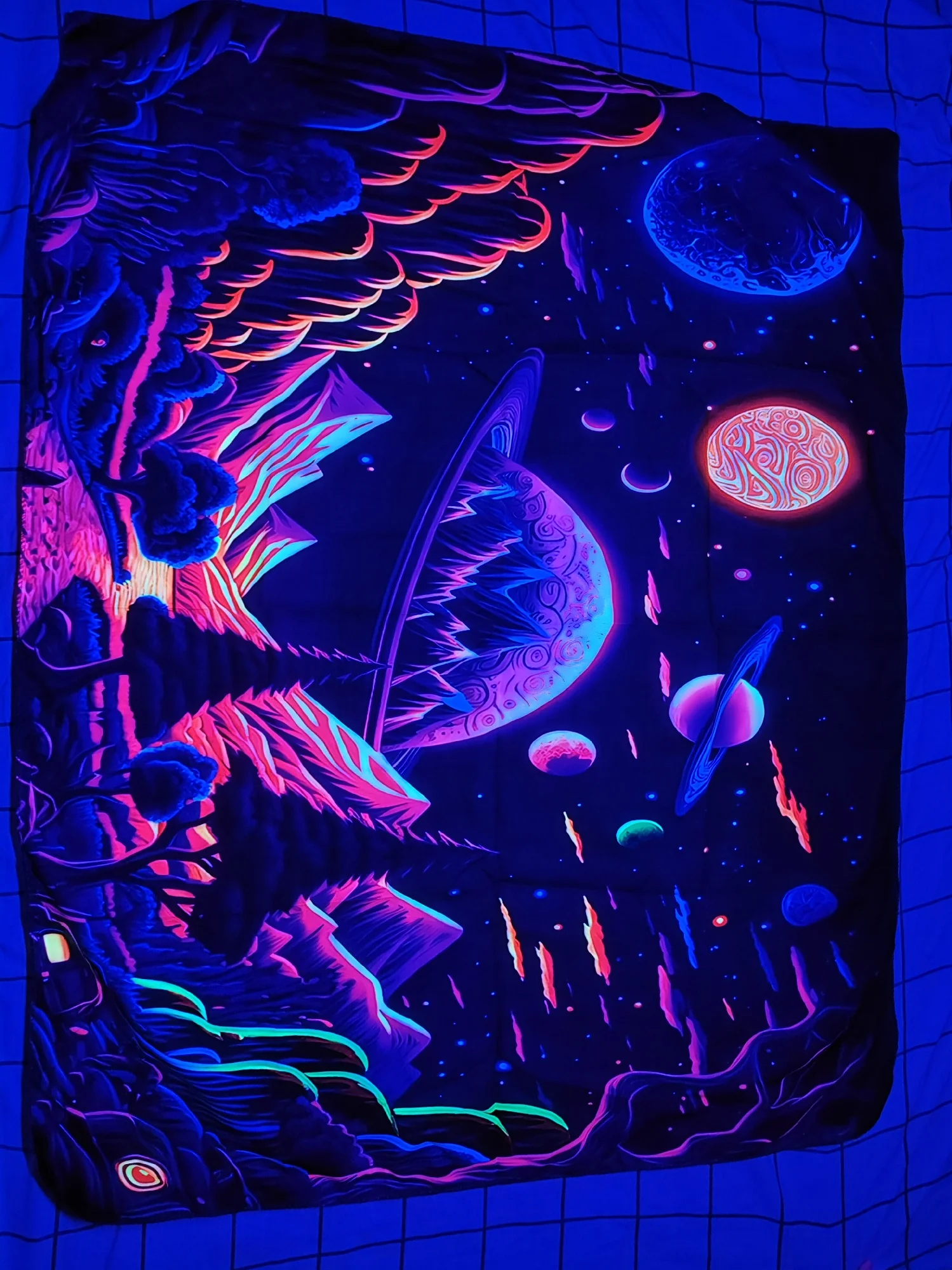 Accrochage mural : Tapisserie UV réactive / blacklight