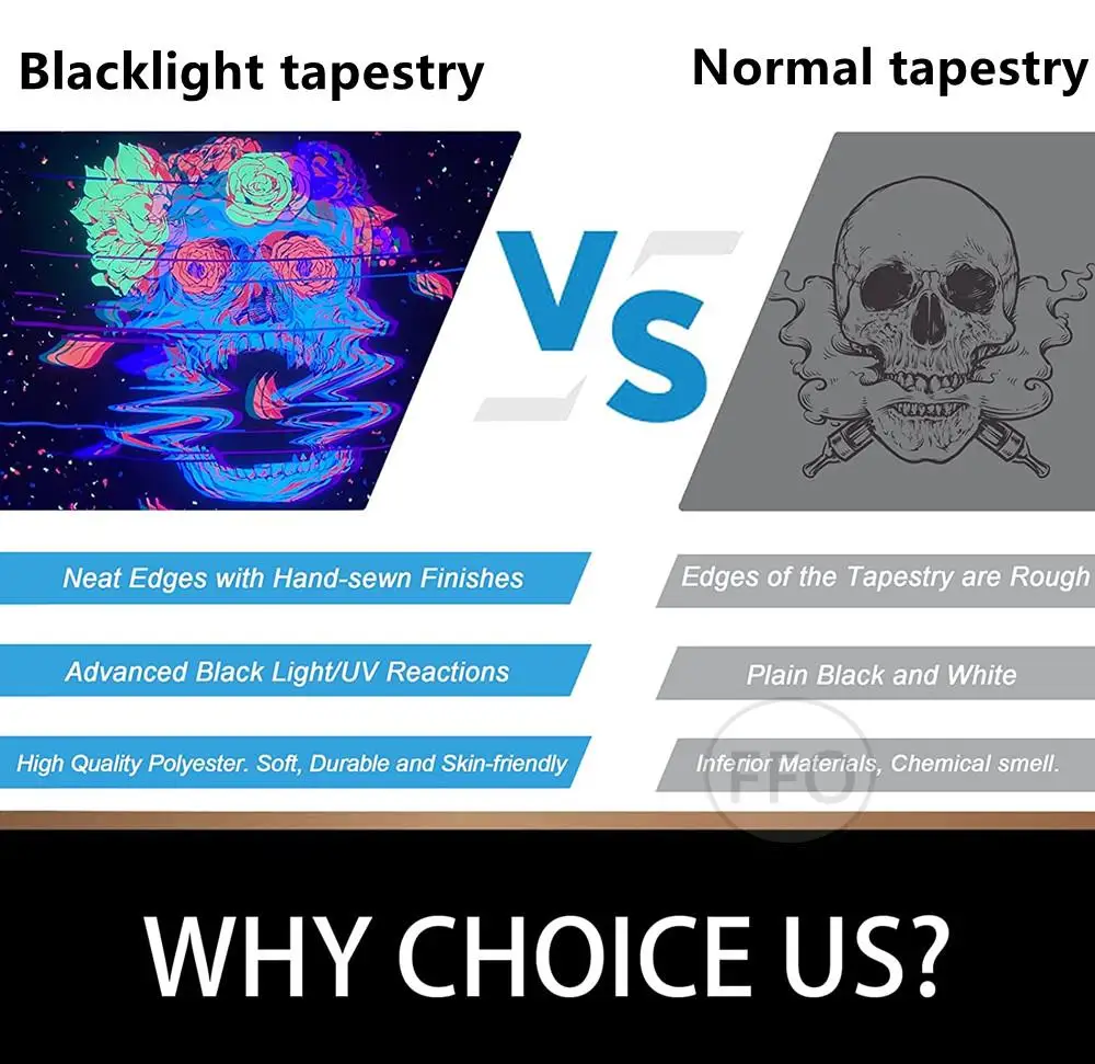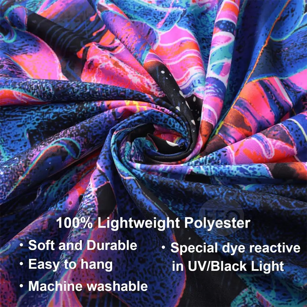 1. Fluorescent tapestry is made of special printing technology, can emit light under ultraviolet light (UV), and is very popular among young people in Europe and America. It can be used as room decoration, PARTY decoration, and DIY by trend players.